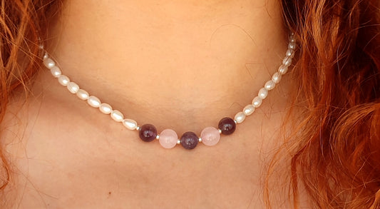 Collar de amatista y cuarzo rosa.